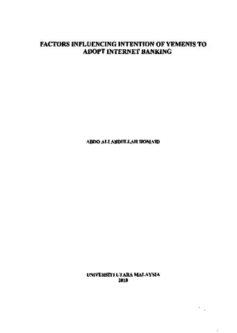 Homaid, Abdo Ali Abdullah (2010) Factors Influencing Intention of Yemenis to Adopt Internet Banking. Masters thesis, Universiti Utara Malaysia.