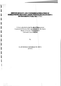 Joma, Slah Eddeen Mummar M. (2008) Service Quality And Customer Satisfaction Of Mobile Phone Provider Among Postgraduate Students Of University Utara Malaysia. Masters thesis, Universiti Utara Malaysia.