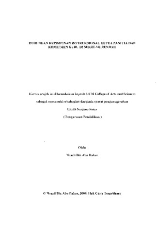 Noazli, Abu Bakar (2009) Hubungan kepimpinan instruksional ketua panitia dan komitmen guru di sekolah rendah. Masters thesis, Universiti Utara Malaysia.