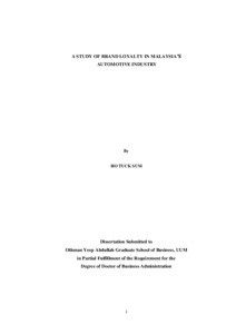 Ho, Tuck Sum (2015) A study of brand loyalty in Malaysia's automotive industry. DBA thesis, Universiti Utara Malaysia.